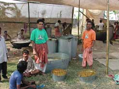 Også her tilberedes vegetarisk offermat- denne gangen til tusenvis av lokale bønder, landarbeidere og småbrukere